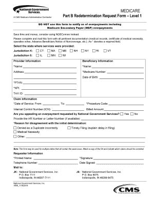 Medicare part b redetermination and clerical error reopening request form. This form may be used to request a redetermination for medicare part b services. Complete all information in the form in upper case letters to clearly identify the key information. If you received a medicare redetermination notice (mrn) on this claim do not use this form to request further appeal. For your convenience this form can be completed online and printed for easy submission to our office: