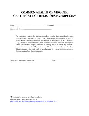 Commonwealth Of Virginia Certificate Of Religious Exemption.