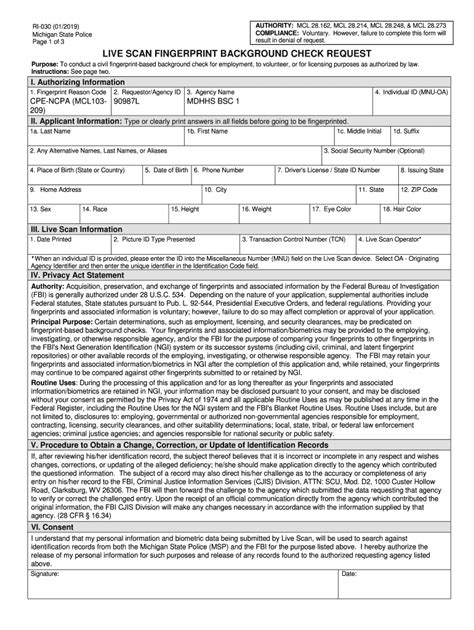 Request For Livescan Form
