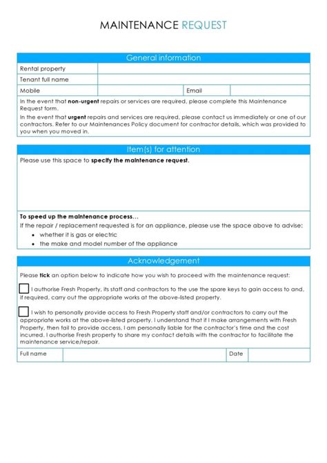 A Maintenance Request Form Is A Formal Document Completed By A Tenant To Inform Their Landlord Or Property Manager That Certain Things Or.