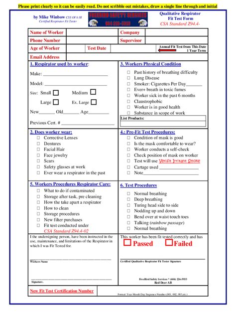 Respirator Fit Test Form
