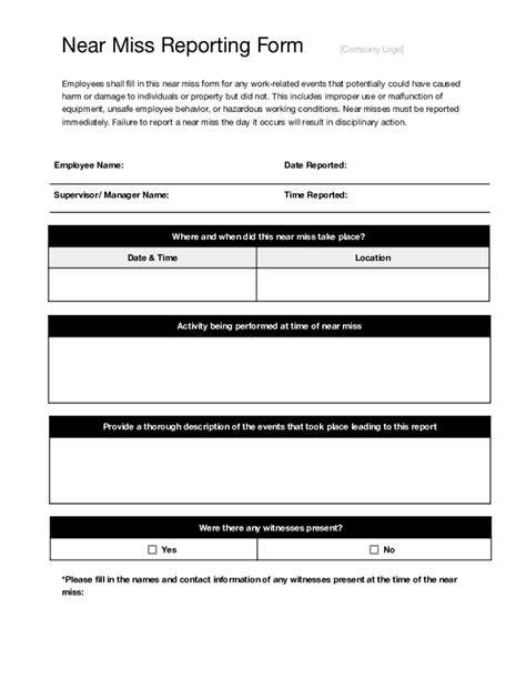 Near Miss Reporting Form 2 Free Templates in PDF, Word, Excel Download