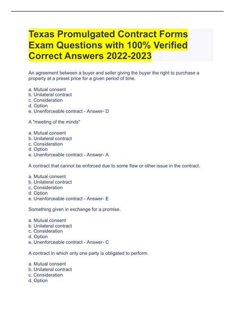 Download Promulgated Contract Forms Final Exam With Correct Answers.