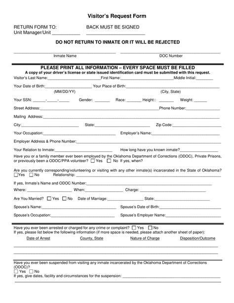 Up To $32 Cash Back The Department Of Corrections Visitation Forms In Oklahoma Are Crucial Documents Required For Individuals Wishing To Visit An Incarcerated Inmate In A State.