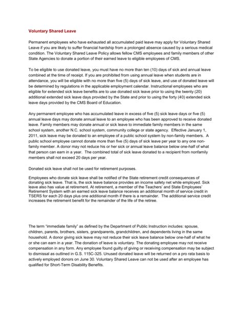 This regulation aims to provide for the voluntary sharing of vacation, bonus or sick leave among university employees in the event of serious and prolonged medical conditions. 5.2 an employee may apply for shared leave when medical evidence is available to support the need for leave beyond 20 days and also beyond the employee's accumulated leave balance. Obtain the voluntary shared leave donation form from your employer or human resources department. An employee may donate leave, as outlined below, to an employee who has been approved to receive voluntary shared leave because of a medical condition of the employee or of a.