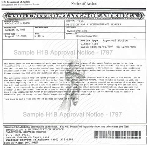 Sample H4 EAD Approval Notice I797 Form by USCIS