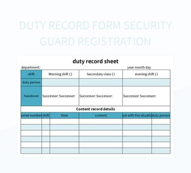 Duty Record Form Security Guard Registration Excel Template And Google