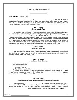 A last will and testament is a legal document that specifies who will inherit your property after your death. Florida last will and testament. 4.5/5 (118k reviews) Need to create a florida last will?