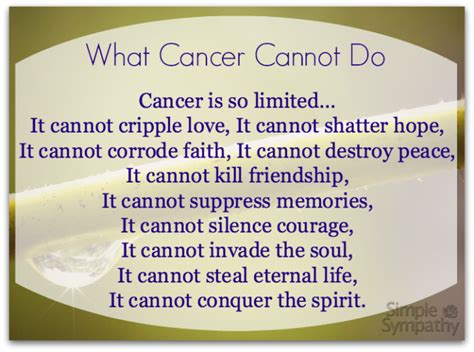 We put together a guide of suggestions on what to say and avoid saying to. Discover how to deliver a positive message to a cancer patient, including. Looking for the right encouraging words for someone with cancer? Losing someone to cancer quotes can help you get through the pain of such.