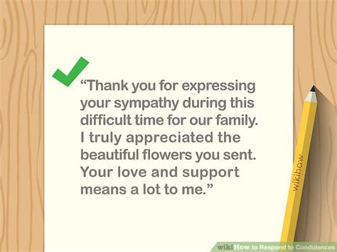 A simple thank you is always a nice way to respond when someone expresses. There are specific and actionable ways to respond to condolences (including not responding). Those who are grieving are also allowed to respond minimally when they're. Keep the letter succinct and use an appreciative tone.