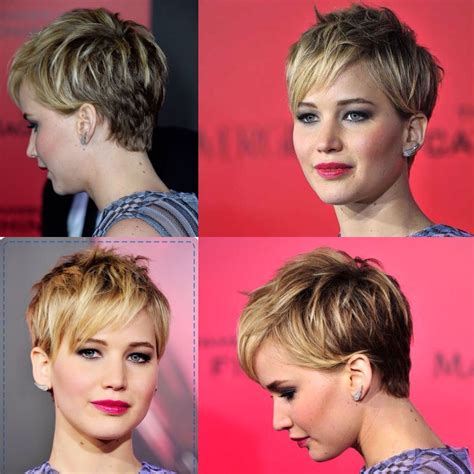 Use arrow keys to navigate. Updated on july 31, 2023. With her bangs super long, she styles them off to the side and a little messy. This elegant hairstyle features a layered pixie cut with jennifer lawrence's short, dirty blonde hair styled beautifully. Her most famous look so far has been the hunger games look.
