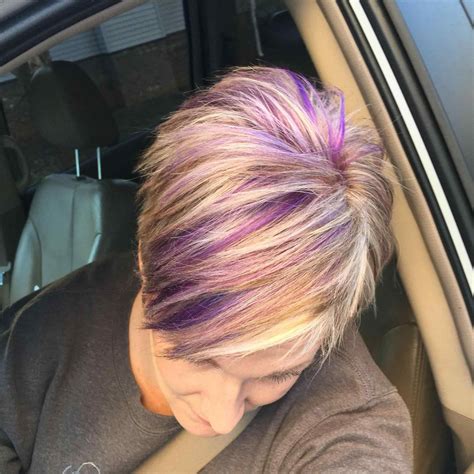 Opt for an edgy, modern look with this spiky pixie purple hair. Valdes, a colorist at maxine salon in chicago. You don’t have to hide your purple hair in subtle highlights for them to look cool and trendy. Web this short purple hair has a deep berry color that can complement a variety of skin tones and give you that little bit of edge. Short style haircuts are currently some of the trendiest looks in the fashion and beauty industry. Lilac highlights in blonde hair.