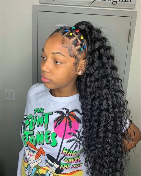 To recreate this look you need a pack of black rubberbands, a rat tail comb for the neat lines, edge control, shine and jam and a good quality ponytail extension. You only need to part your hair down the middle and then gather small sections into small ponytails. Half up half down rubber band curly bun and ponytail; This is a fancy take on the traditional ponytail.