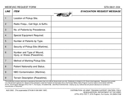 1) the location of the pickup site and call sign/frequency. Contact the unit that controls the evacuation assets. Number of precedence by number _____ If you find a flaw in the. It serves as a crucial guide for military personnel requiring medical evacuation.