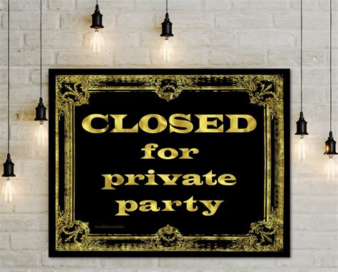 Download this free reserved for private party sign available in an easy to print pdf format, used to indicate that a certain space is reserved for private party. Closed for private party an gold and black sign a necessity for your next event. Your digital download includes digital jpg and pdf files that you can print to 5x7, 8x10, 11x14, and. An gold and black sign.