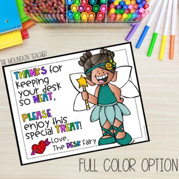 Perhaps your desk fairy visits once a week, or more or less frequently (up to you!). Then print off and copy the desk fairy notes (color or black and white) and be ready to pass them out as you catch kids with clean desks. This freebie includes a variety of desk fairies, tips, and printable coupons/notes to leave in student desks. The book encourages the children to clean up their desk every night because you never know what night the.