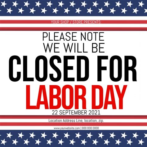 Select your preferred template and it will automatically go to. Thousands of stock photos and easy to use tools. A simple closed for labor day template featuring blue arching stars, the american flag and a we'll be closed in observance of labor day text. These free downloadable labor day templates are perfect for all you business owners who need to display a sign that tells your customers you are closed for the holiday or have a special sale. Explore professionally designed labor day templates you can customize and share easily from canva. Looking for closed for labor day signs?