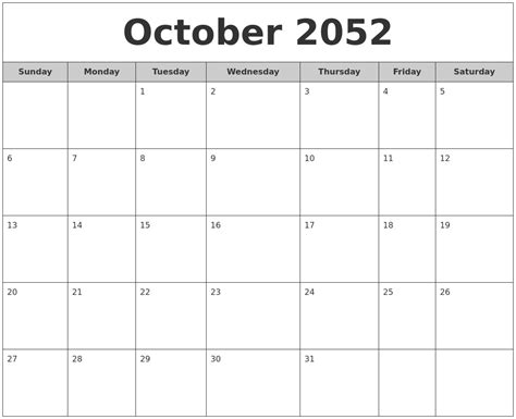 Free Printable October Calander