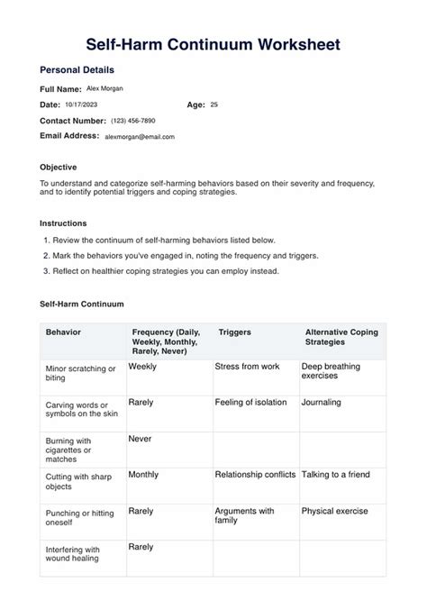 Free Printable Teens Self Harm Worksheets