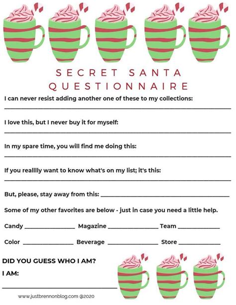 Christmas Secret Santa Questionnaire Printable Secret Santa Form for