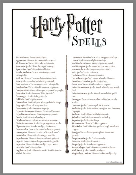 Download a free microsoft word document with a printable list of spells and their. Find out the names and meanings of all the spells used in the harry potter books and movies. Click this link to print the harry potter spell book. But it would be fun anytime for a harry potter fan.