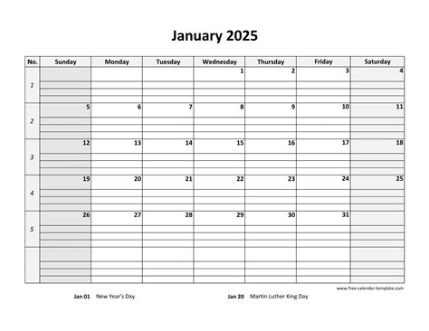 Download january 2025 calendar free printable with week numbers, federal holidays, grid lines, horizontal layout, available in docx (ms word), pdf (adobe reader pdf) and jpg. Print a calendar for january 2025 quickly and easily. Doesn't get easier than that. Find a design and calendar perfect for your needs by choosing from 107 different january 2025 monthly calendars.