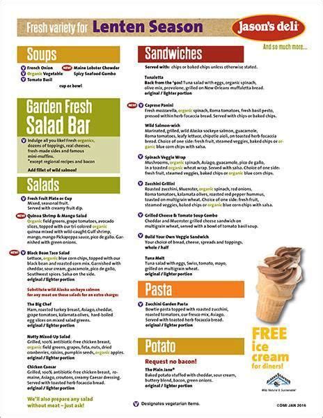 Manager's special half sandwich with chips or baked chips and one side: Browse the full jason's deli menu, order online, and get your food, fast. Veterans and active duty military receive a free meal from a select menu on november 11 at participating locations. Baked chips, jalapeno chips, kettle chips, salt and vinegar chips. For the most current nutrition, ingredient and allergen information, visit our website: Limited time offers, test or regional items have not been included in our menu.