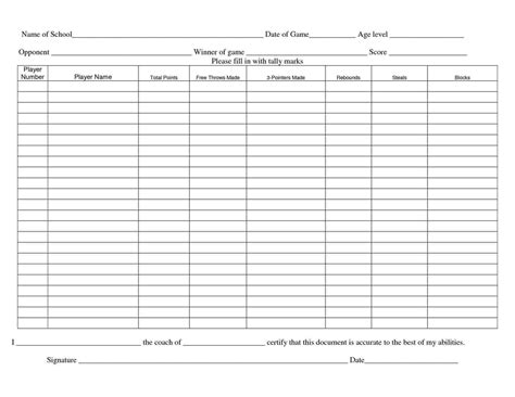 Printable Basketball Stat Sheet