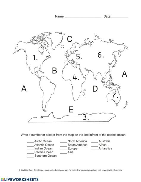 Enhance geography skills with free printable 7 continents and oceans worksheets for elementary students: Over the years, we have used several different world map activity sheets. A labelled printable continents and oceans map shows detailed information, i.e., everything present in the continents.