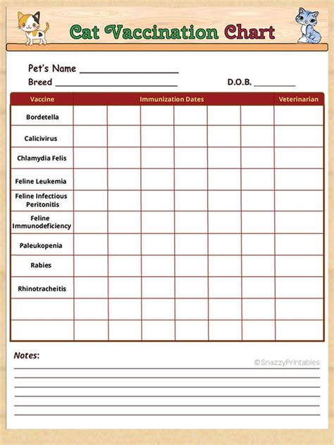 This Cat Vaccination Char Has Space To Record All Of Kitty's Injections.