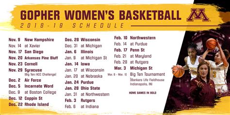 Printable Minnesota Gopher Basketball Schedule