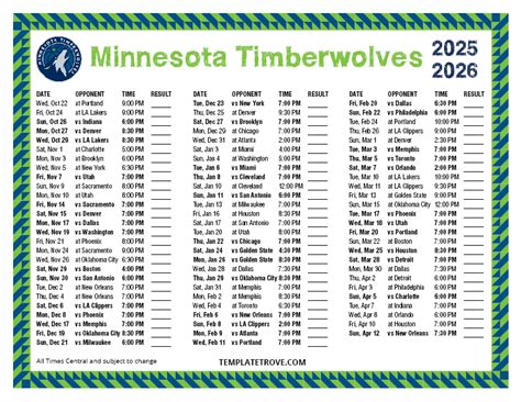 Calendar schedule pdf created date: 30 at atlanta 6:30 pm nov. 24 at sacramento 9:00 pm sat. Includes game times, tv listings and ticket information for all timberwolves games. Away home all times in central standard time april sun mon tue wed thu fri sat 3 4 5 6 7 8 9 10 1 2 6:00 hou tbd chi 7:00 was 8:00 den sas march sun mon tue wed thu.