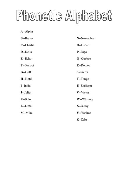 See current and historic phonetic alphabets from wwi to present. Military phonetic alphabet printable pdf. Printable pdf of the military phonetic alphabet. Developed by the defending world war champs the military phonetic alphabet , alpha , bravo charlie delta echo ,. A code you need to know with nato phonetic alphabet chart character alphabet pronunciation a alpha al · fah b bravo brah · voh c charlie char · lee d delta dell. The nato alphabet became effective in 1956 and, a few years later, turned into the established universal phonetic alphabet for all military, civilian and amateur radio communications.