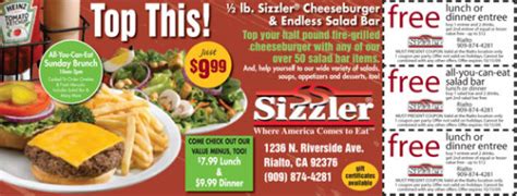 Sign up today and get a free salad bar with your next meal! Receive your desired products now with special offers. Our experts service all makes and models. Sizzler is a steakhouse chain with locations throughout the.