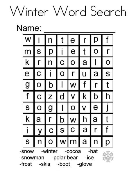 When the weather turns cold, warm the kids up inside with some hot cocoa and our winter word search puzzle! Find 15 or more hidden words related to winter in these fun and educational puzzles. Use a snowflake printable to teach math, writing, and to decorate your classroom. For the next several weeks leading up to.
