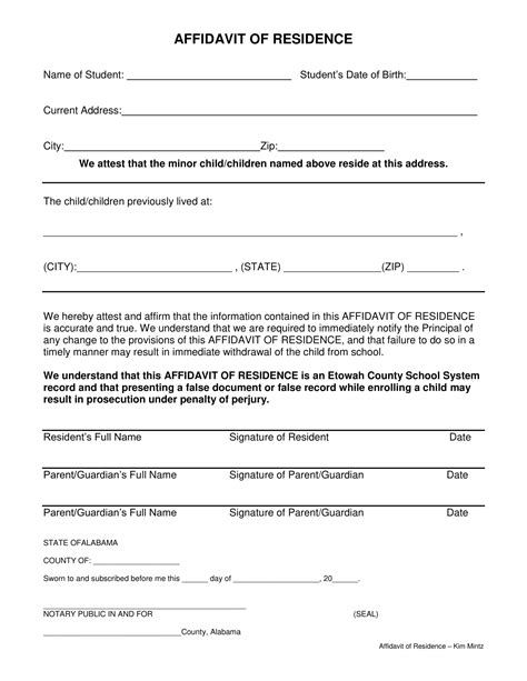 Affidavit Of Residence Template