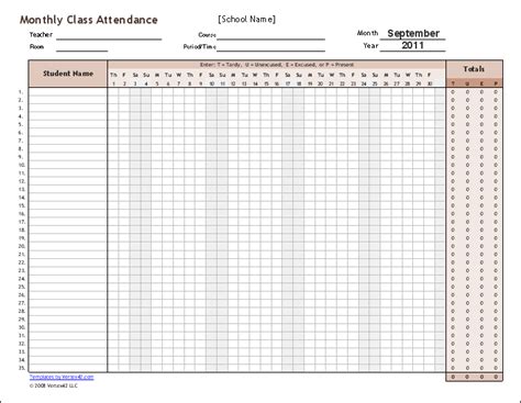 Google Sheets Attendance Template Printable Attendance Sheet
