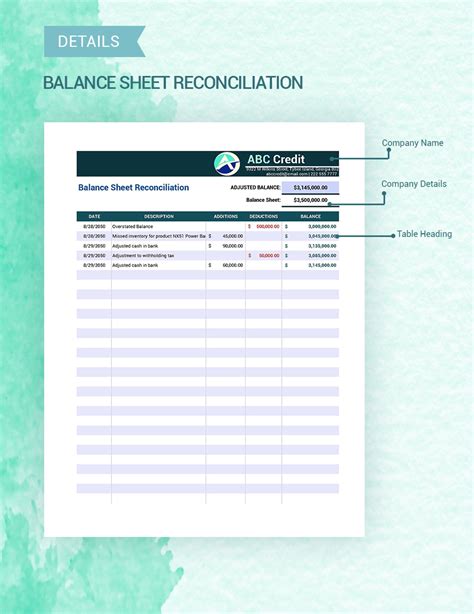 Download Reconciliation Balance Sheet Template Excel PDF RTF