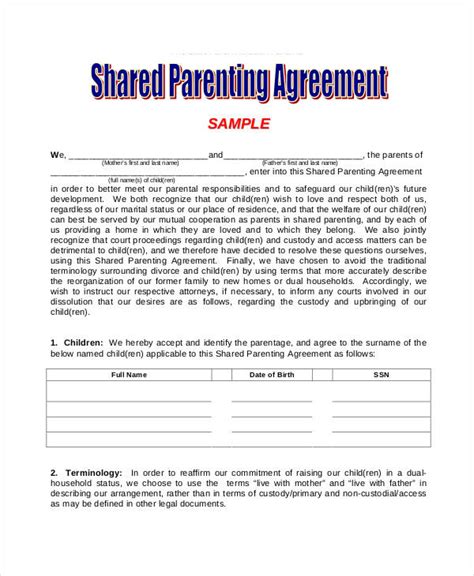 The following portion is only a small part of the whole, but gives potential users a glimpse of the style of the agreement. *this is for educational purposes only and a real agreement should always be drafted by a. Download a printable copy to create schedules for notarized parenting agreements and more for free! Click above link for the full sample shared parenting agreement. The parenting plan template that you use to create your own parenting plan should be closely related to the common agreements that are used in your state.