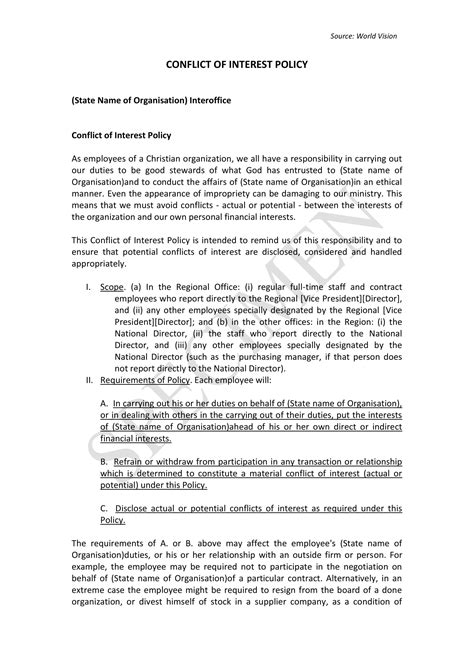 These types of policies are generally very short and to the point. Here's an example of a conflict policy that explicitly acknowledges how the nonprofit will address duality of interests. Check out our conflict of interest policy sample and feel free to model your own after it. It emphasizes mutual trust, outlines potential conflicts, and provides guidelines for resolution, ensuring the. Conflict of interest is a situation where an employee is involved in an activity or behavior that benefits them and not their employer. Conflict of interest policy template.