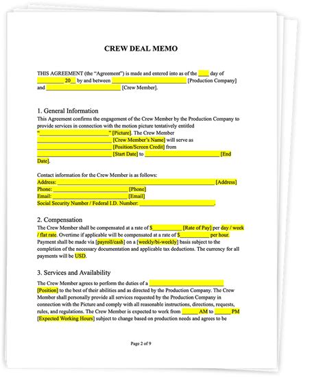 A crew deal memo is a document used in the film and television industry to outline the terms of employment for members of a production’s crew. This not only expedites drafting but also ensures. It is considered to be a documentation. It typically includes information such as the.