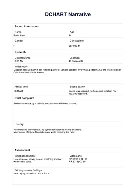 Dchart Ems Template - How to write a narrative in ems || dchart made easy! See an example of a narrative using the dchart format and tips on what information to include. Thanks for tuning in to see this dchart example!learning. Learn how to use the dchart narrative system to document patient information and medical events during ems operations. A template for documenting a patient encounter in emergency medical services using the dchart format. Here is an example narrative. Where did you transport to if specialty center, why?