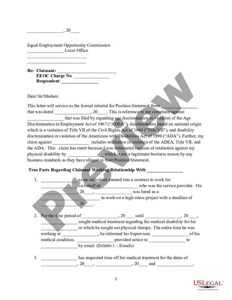 Formal Rebuttal to EEOC Sample Eeoc Position Statement Rebuttal US