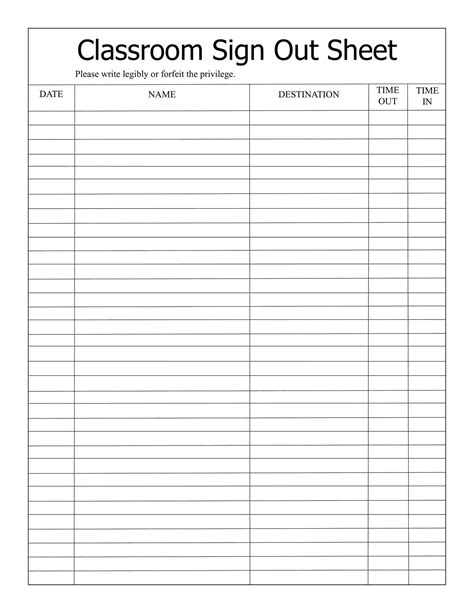Free Sign Out Sheet Template