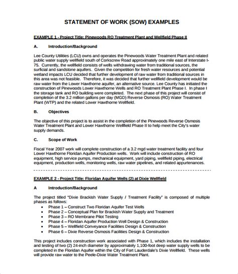 View An Example Statement Of Work Document Template.