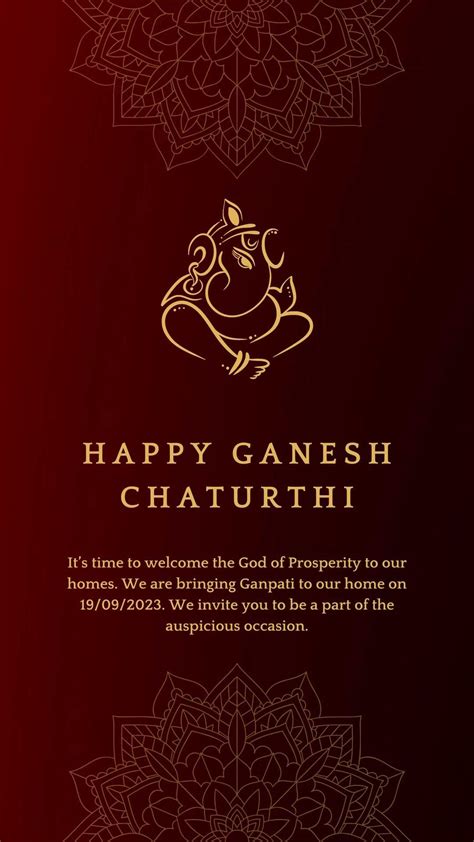 Edit invitation card online and add venue, date & invited by detail and make it for your ganesh chaturthi festival celebrations. Thousands of stock photos and easy to use tools. Customize printable ganesh chaturthi card designs with beautiful greeting card templates. Create a ganesh chaturthi invitation card with our free online card maker. Create free online ganesh chaturthi invitation ecard & video with instant download.
