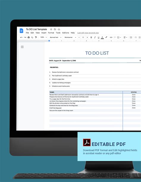 Google docs lets you create good to do list templates. Designed for effectiveness, it's the perfect solution! Enjoy free to do list templates for your personal or business use. Instead of starting by creating and formatting your tables by yourself, these templates can help you get started without hassle. Make managing your tasks a breeze with our to do list free google docs template.