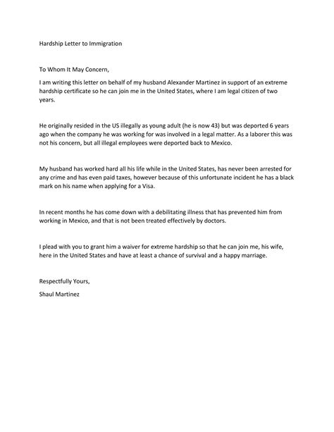 Hardship Letter For Immigration For Husband For Your Needs Letter