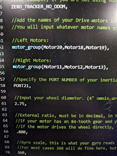 It would be nice for you to describe the situation in a little more detail. Looking at this screenshot, would you set the distance based on the actual drive, the motor, or a wheel? I used the chassis.drive_distance(400, 0, 10, 10, 10, 3, 4000, 0.4, 0, 0, 0, 0, 0, 0, 0); Ecstaticpilot february 6, 2024, 9:24pm I just inputed the p in the pid constants and have tried to lower and raise them, but the.