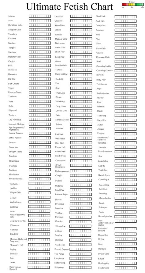 Pick your winners and share your finished bracket. Fill the jar with your kinks and share your answers. Up to $32 cash back complete kink chart online with us legal forms. It comprises everything from general kinks (praise, bondage, anal play, etc) to specific sex acts (anal play: